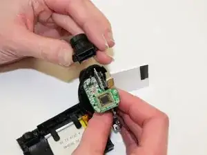 За объективом используйте металлическую отвёртку, чтобы выкрутить два винта, крепящие объектив к печатной плате.