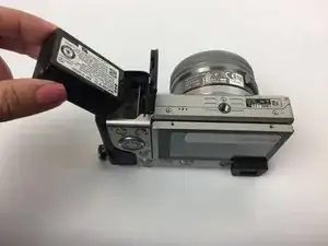Сдвиньте фиксатор отсека батареи влево, чтобы разблокировать его.