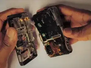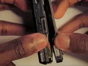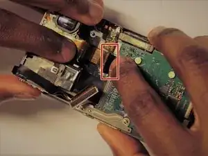 Разъем ZIF можно удалить, перевернув маленький черный фиксатор в вертикальное положение, а затем осторожно вытащив шлейф.
