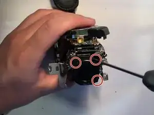 Удалите три винта Phillips #00 длиной 2 мм вокруг объектива.