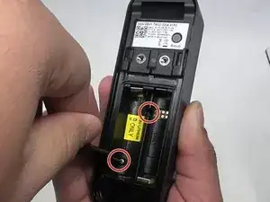 Извлеките правую батарею, нажав на положительный контакт вниз и потянув батарею на себя.