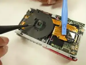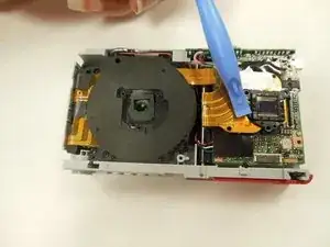 Снимите шесть винтов длиной 3,25 мм, которые крепят оптический объектив к каркасу камеры.