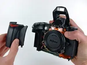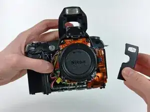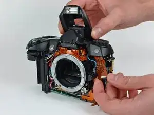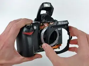 Снимите заднюю крышку с корпуса D70, следя за шлейфом платы ЖК, который может зацепиться.