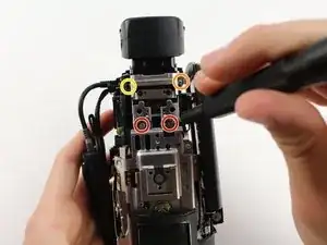 Удалите два винта Phillips #00 длиной 4 мм в правом верхнем углу камеры.