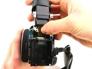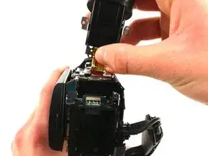 Поднимите медный провод печатной платы, соединяющий окуляр с корпусом камеры.