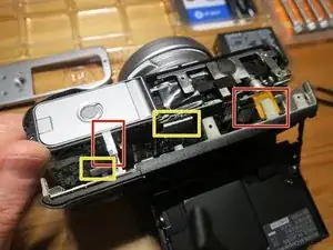 Используйте тонкую лопатку, чтобы отклеить резиновый поролон около видоискателя, который может удерживать заднюю крышку.