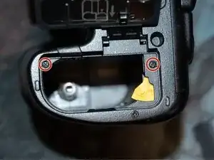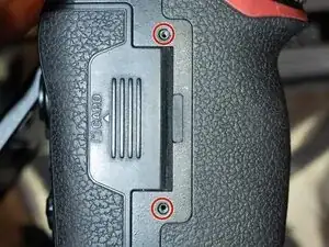 Снимите объектив, аккумулятор, рукоятку и карты памяти с корпуса камеры. Установите крышку корпуса, чтобы предотвратить попадание пыли внутрь. Подготовьте рабочее место с защитой от статического электричества, чтобы не повредить электронику.