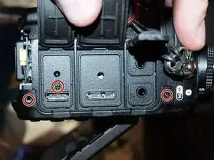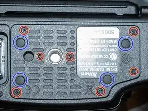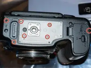 Удалите 7 винтов J00 (обведены красным) на центральной крышке основания внизу камеры.