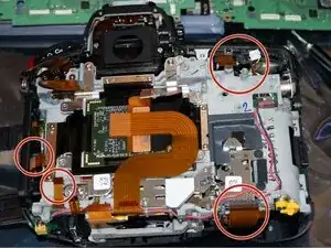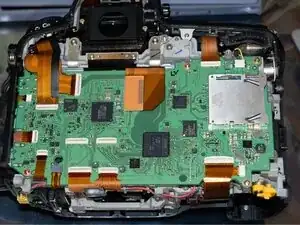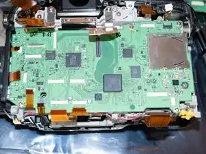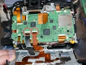 Удалите 5 винтов J00 по краю основной платы. Плата поднимется прямо вверх и вправо и выйдет из корпуса камеры.