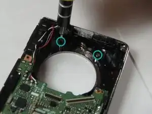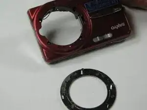 Снимите круглый серебристый ободок с передней части камеры.