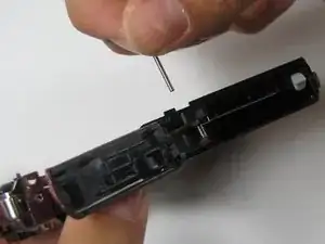 Выньте штифт. Будьте внимательны, чтобы не потерять пружину и чёрную прокладку.