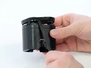 Вытяните белый кубовидный аккумулятор сзади, чтобы удалить его из камеры.