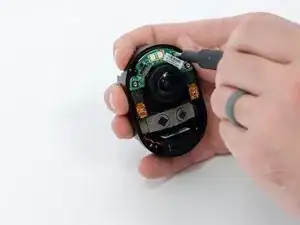 Используйте отвертку Phillips #00, чтобы удалить два черных винта длиной 4.00 мм, расположенные напротив друг друга над объективом камеры.