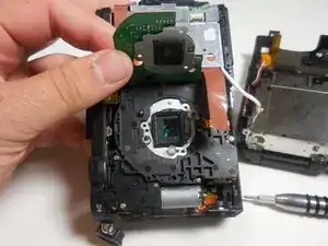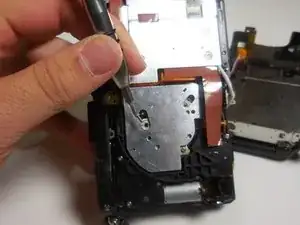 Снимите черный винт длиной 4,3 мм на верхней части камеры, прямо над местом, где экран выдвигается. Используйте отвертку Phillips #00.