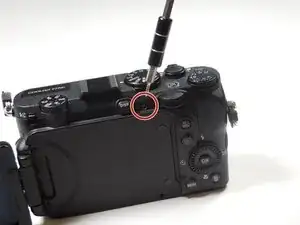 Снимите два черных винта длиной 4,3 мм с правой стороны камеры с помощью отвертки Phillips #00.