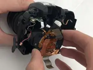 Осторожно удалите отсек объектива из корпуса камеры.