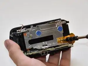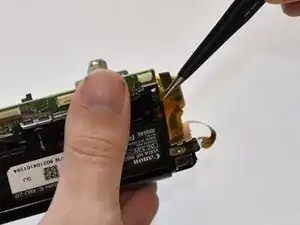 На корпусе закреплён небольшой элемент гибкого кабеля. Снимите его, потянув от корпуса пинцетом.