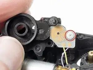 Удалите два винта 3.4 мм, крестовая отвертка #00. Снимите пластину, удерживающую контакты на месте.