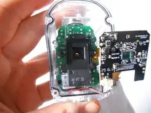 Открутите четыре винта Phillips #00 длиной 4,0 мм с обеих сторон прозрачного корпуса.