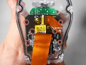 Открутите шесть чёрных винтов Phillips #00 длиной 3,0 мм, удерживающих чёрную плату.