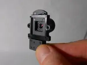 Снимите чёрную пластмассовую деталь, содержащую камеру, с её места.