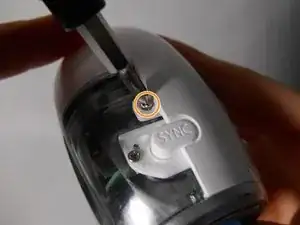 Переверните камеру и открутите центральный винт Phillips #00 длиной 3,0 мм над кнопкой SYNC.