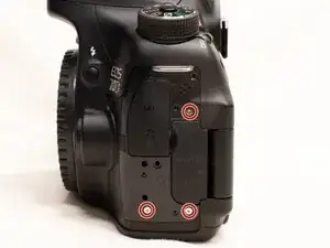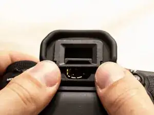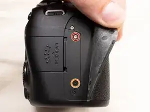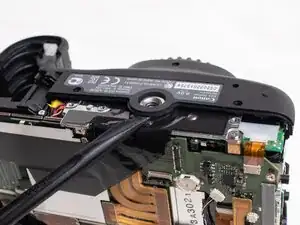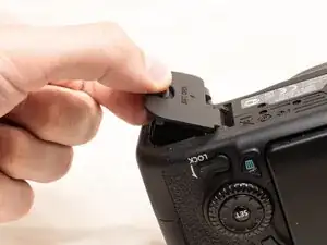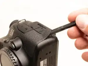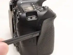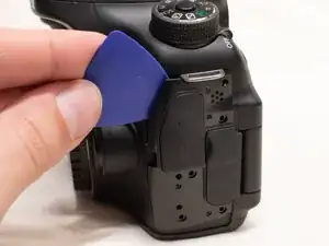 С помощью пластикового лопатки снимите резиновую накладку с левой стороны камеры.