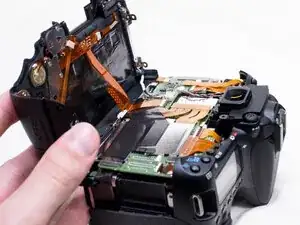 Вы можете приподнять заднюю крышку в сторону нижней части камеры, чтобы лучше добраться до разъёмов и снять шлейфы.