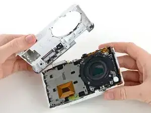 Используйте руки, чтобы медленно оттянуть переднюю панель от камеры.