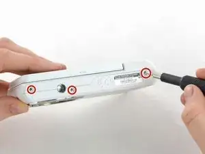 Используйте отвертку Phillips #00, чтобы удалить три винта длиной 4 мм с нижней части корпуса.