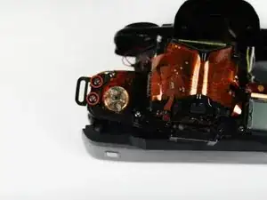 Используя отвертку Phillips #000, удалите два черных винта, показанных на картинке, длиной 6 мм и диаметром 1,25 мм.