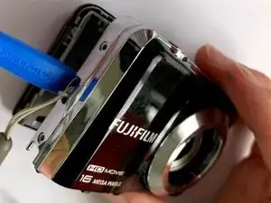 Используйте пластиковую лопатку, чтобы отделить каждую сторону корпуса камеры.