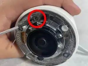 Удалите четыре маленьких винта с пластикового кожуха камеры.