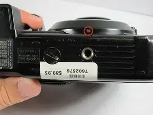 Переверните камеру вверх дном и удалите винт 5.4 мм под ободком объектива на передней части корпуса.