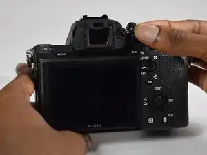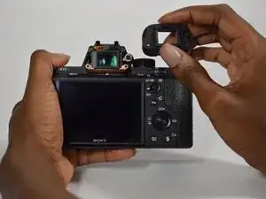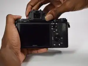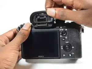Осторожно снимите пластиковую пластину видоискателя с камеры.