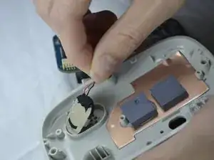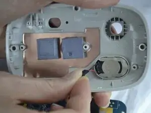 Используйте пинцет, чтобы поддеть между микрофоном и резиновой накладкой и извлечь микрофон из передней крышки.