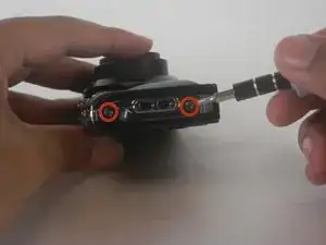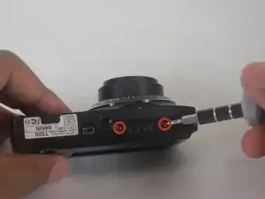 Выверните винт с крестообразным шлицем 3.5 мм в углу камеры.