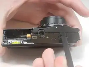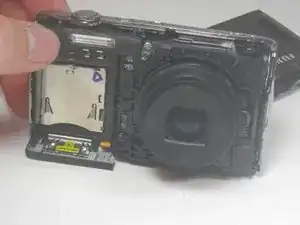 Осторожно откиньте переднюю половину корпуса от камеры.