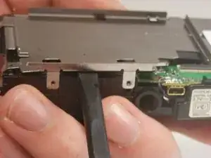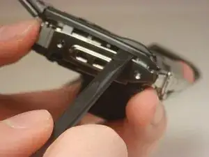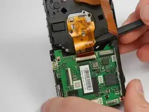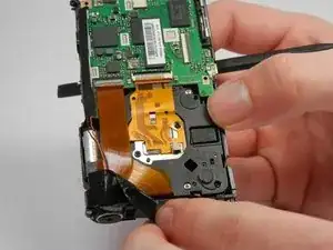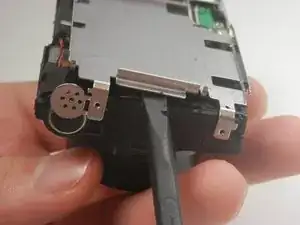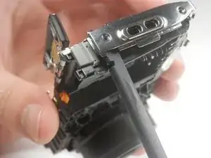 Используйте пинцет, чтобы отогнуть пластиковое покрытие верхней части камеры.