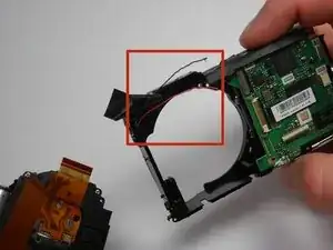 Ранее оголённые чёрный и красный провода могут мешать при снятии объектива и могут порваться. Если это произойдёт, при повторной сборке потребуется припаять эти провода на место.