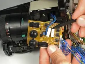 Отключите два кабеля в нижней части платы с кнопками эффектов.