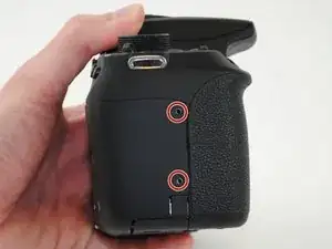Положите камеру на спинку так, чтобы крышка отсека карты/аккумулятора была обращена к вам.
