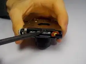 Вставьте лопатку/плоскую отвертку в корпус там, где были винты, чтобы поддеть корпус с задней стороны.