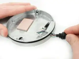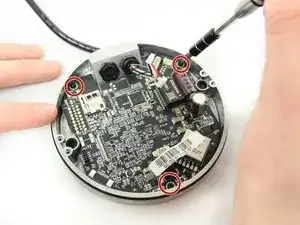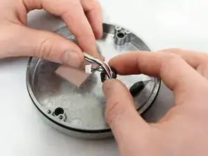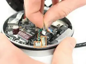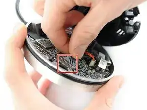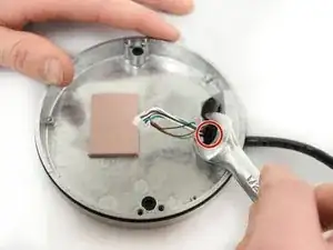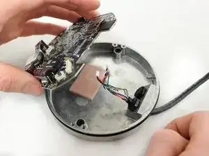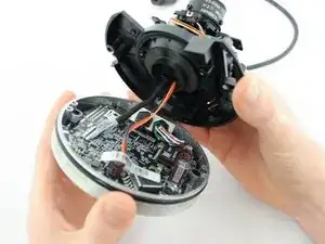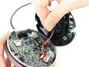 Отключите два кабеля от материнской платы основания камеры, аккуратно но решительно потянув непосредственно от соответствующих разъёмов.