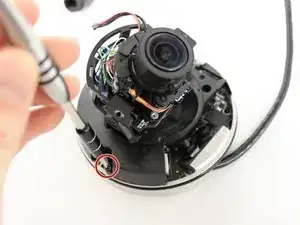 Отвинтите два 10‑мм винта, фиксирующих пластиковое основание камеры к металлическому основанию, используя отвертку PH1.