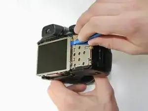 Используйте пластиковый инструмент для открывания, чтобы отделить экран LCD от камеры.