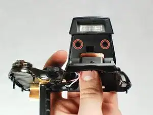 Удалите штифты, удерживающие механизм вспышки на месте. Может понадобиться пинцет.