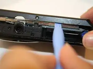 С помощью пластикового инструмента для разъема аккуратно приподнимите камеру, сняв заднюю крышку.