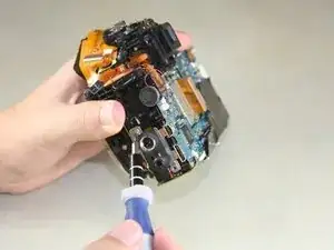 Выкрутите винт 8 мм, крестовая отвертка #00, с нижней стороны передней части камеры.