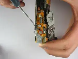 Удалите винт, крепящий крышку разъёма Mini USB к верхней части корпуса камеры.